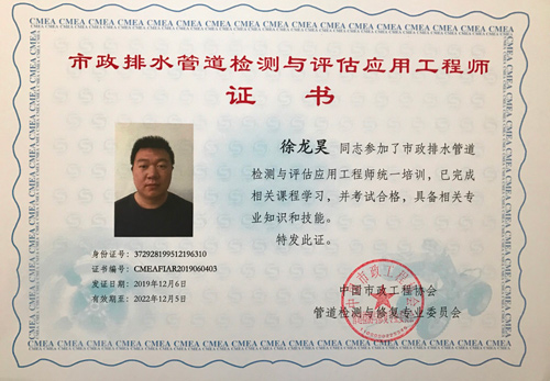 “2019年第三期市政排水管道檢測與評估應(yīng)用工程師培訓(xùn)班”,于12月5日-6日在浙江湖州順利舉行。本次培訓(xùn)由中國市政工程協(xié)會管道檢測與修復(fù)專業(yè)委員會主辦,北京建研住工建筑工程集團有限公司和上海派濮會展服務(wù)中心承辦,青島鑫亞環(huán)境科技有限公司、武漢特瑞升電子科技有限公司、武漢新光專用汽車制造有限公司、武漢中儀物聯(lián)技術(shù)股份有限公司、深圳市博銘維智能科技有限公司、深圳市施羅德工業(yè)集團有限公司共同協(xié)辦。