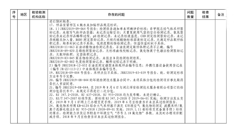 6 | 石家莊 | 河北環海檢測科技有限公司 | 19 | 整改(暫停) |