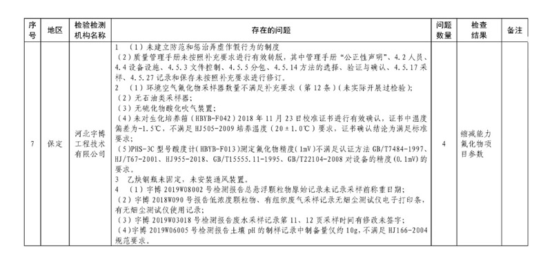 37 | 廊坊 | 廊坊科信翔宇檢測有限公司 | 8 | 整改(暫停) |