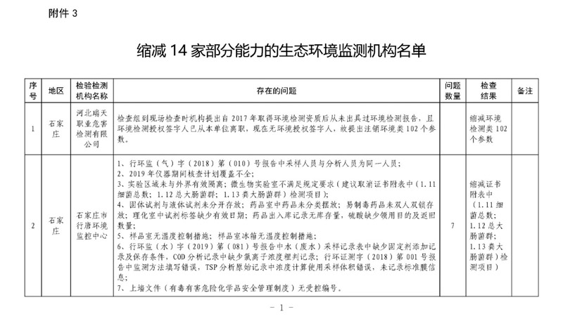 8 | 石家莊 | 河北中持環境檢測服務有限公司 | 18 | 整改(暫停) |