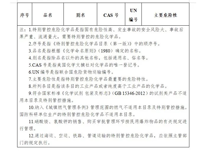 對列入《特別管控危險化學(xué)品目錄(第一版)》的危險化學(xué)品應(yīng)針對其產(chǎn)生安全風(fēng)險的主要環(huán)節(jié),在法律法規(guī)和經(jīng)濟技術(shù)可行的條件下,研究推進實施以下管控措施,最大限度降低安全風(fēng)險,有效防范遏制重特大事故。