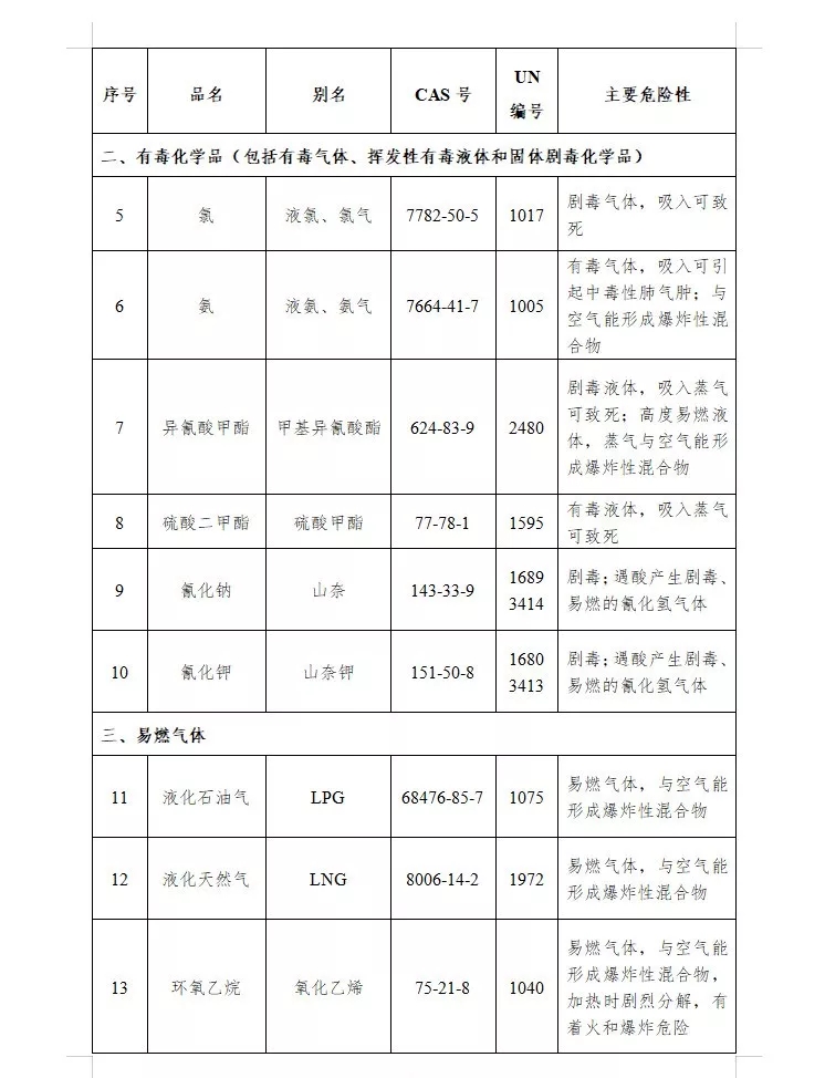 《目錄》列舉的特別管控危險化學(xué)品包括20類,分別是:硝酸銨[(鈍化)改性硝酸銨除外]、硝化纖維素(包括屬于易燃固體的硝化纖維素)、氯酸鉀、氯酸鈉、氯、氨、異氰酸甲酯、硫酸二甲酯、氰化鈉、氰化鉀、液化石油氣、液化天然氣、環(huán)氧乙烷、氯乙烯、二甲醚、汽油(包括甲醇汽油、乙醇汽油)、1,2-環(huán)氧丙烷、二硫化碳、甲醇、乙醇。